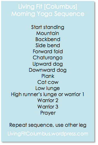 So we made our own quick little version. Repeat this sequence as many times as you have time for, or add in your own favorite poses. Nothing too strenuous, just an easy flow to get your mind & body ready for the day. Hold each pose as long as you like and really focus on your breath.